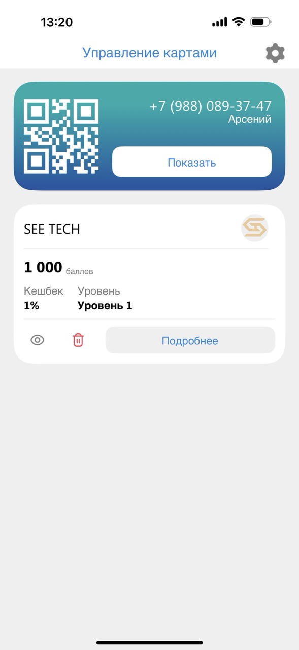 Теперь вы вошли в систему и можете управлять своей бонусной картой, отслеживать баланс и начисления!