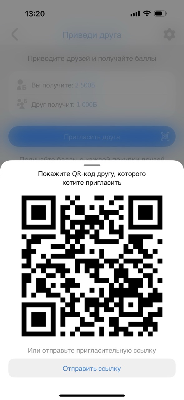- Нажмите кнопку «Пригласить друга», чтобы получить вашу уникальную реферальную ссылку или QR-код.